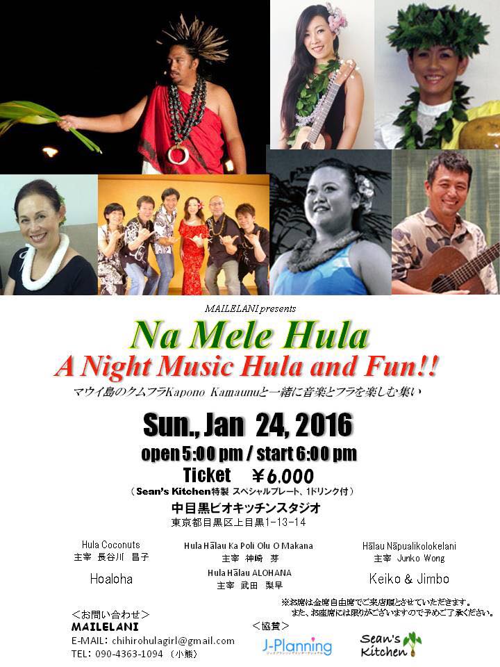 素敵なフラスタイルにフューチャーされているマウイ島のクムフラカポノカマウヌと一緒にハワイアンを楽しむ会です。